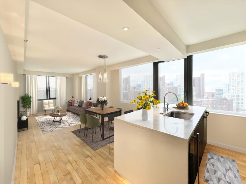 法拉盛黄金地段,年轻condo,领包入住,兼具都市奢华与无可比拟的便利性。宽敞的2卧室2浴室公寓,室内采光充足,客厅宽敞明亮,可尽览城市美景,搭配全屋优雅木地板。开放式厨房配备通风系统、不锈钢电器与花岗岩台面,是热爱烹饪者的理想选择。主卧面积宽敞,带有独立卫浴,次卧设有大衣柜,起居区另有额外储物空间,方便整洁收纳。其他亮点包括室内洗衣机/烘干机、酒櫃,24小时门卫与监控系统,步行可达7号地铁、LIRR火车站、凯悦酒店、Tangram商场、各类商店与餐厅,地理位置优越。集舒适与价值于一体,是皇后区最受欢迎地段之一的理想居所。