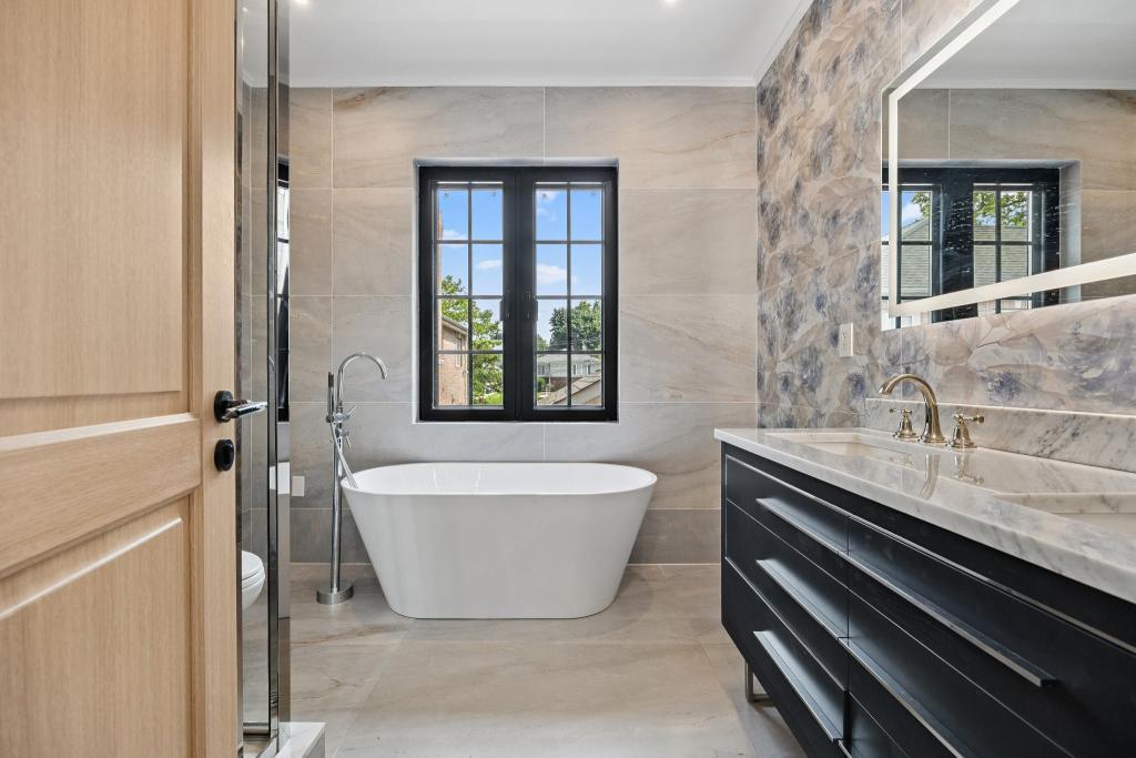 Experience unparalleled modern luxury in this brand-new construction home located in the prestigious Bayside neighborhood. Sitting proudly on a 4,020 sq ft lot, this gorgeous mansion is full of elegantly designed interior space, including 4 spacious bedrooms, 4 beautifully appointed bathrooms, a finished high-ceiling basement with 4 large windows making the basement sunny like other floors, and a spacious attic. Crafted with meticulous attention to detail and no expense spared, the home features, central AC, soaring grand double-height foyer and top-of-the-line appliances from Bosch, Grohe, Toto, Kohler, and premium European brands, luxurious kitchen with a marble island, steam oven, every inch of the home exudes sophistication and comfort. Highlights include custom wardrobes, a 220V EV charging socket. The home offers a practical layout and spacious attic, a separate basement entrance, and a long driveway fitting 5–6 cars. Ideally located near Bell Boulevard’s shops and restaurants, Crocheron Park, LIRR, bus lines, and the Bayside Marina, this is a rare opportunity to own a warm, inviting, and truly distinguished home in one of Queens' most sought-after neighborhoods.