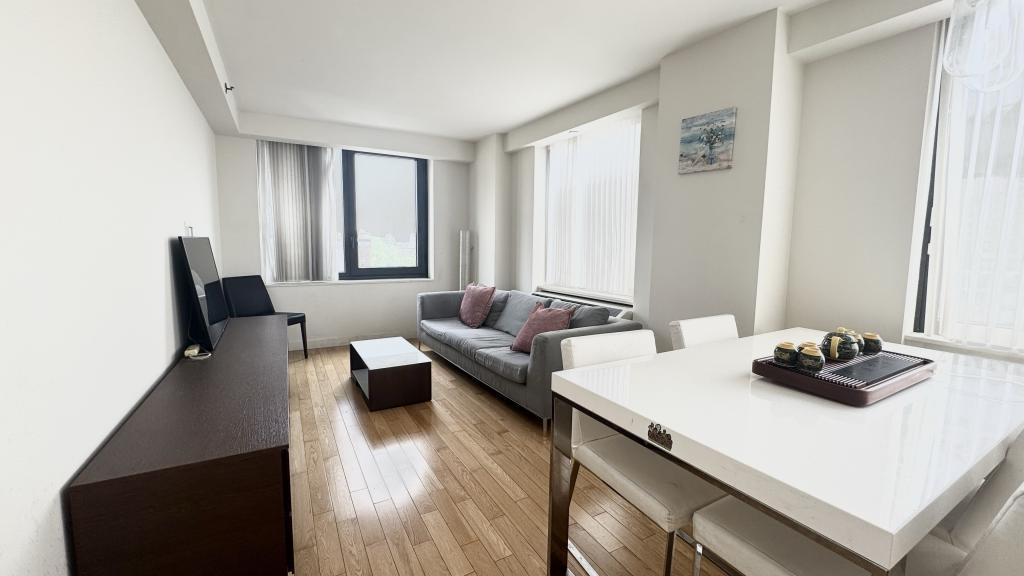 法拉盛黄金地段,年轻condo,领包入住,兼具都市奢华与无可比拟的便利性。宽敞的2卧室2浴室公寓,室内采光充足,客厅宽敞明亮,可尽览城市美景,搭配全屋优雅木地板。开放式厨房配备通风系统、不锈钢电器与花岗岩台面,是热爱烹饪者的理想选择。主卧面积宽敞,带有独立卫浴,次卧设有大衣柜,起居区另有额外储物空间,方便整洁收纳。其他亮点包括室内洗衣机/烘干机、酒櫃,24小时门卫与监控系统,步行可达7号地铁、LIRR火车站、凯悦酒店、Tangram商场、各类商店与餐厅,地理位置优越。集舒适与价值于一体,是皇后区最受欢迎地段之一的理想居所。
